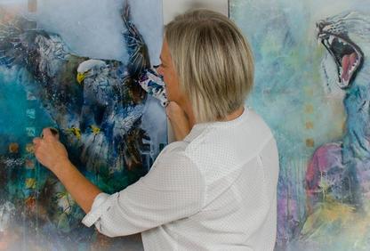 Vivi er udøvende billedkunstner med en særlig sans for struktur, farver og materialets iboende muligheder. Hendes kunstneriske udtryk bevæger sig i spændingsfeltet mellem det rå og det harmoniske – hvor overflader, dybde og taktile elementer får lov at spille hovedrollen. Naturen og livets kontraster er gennemgående inspirationskilder, og værkerne balancerer det minimalistiske med det sanselige. Som certificeret underviser og erfaren formidler arbejder Vivi både med fysiske kurser og online undervisning. Hendes tilgang er præget af faglig præcision, nærvær og en dyb respekt for den kreative proces.